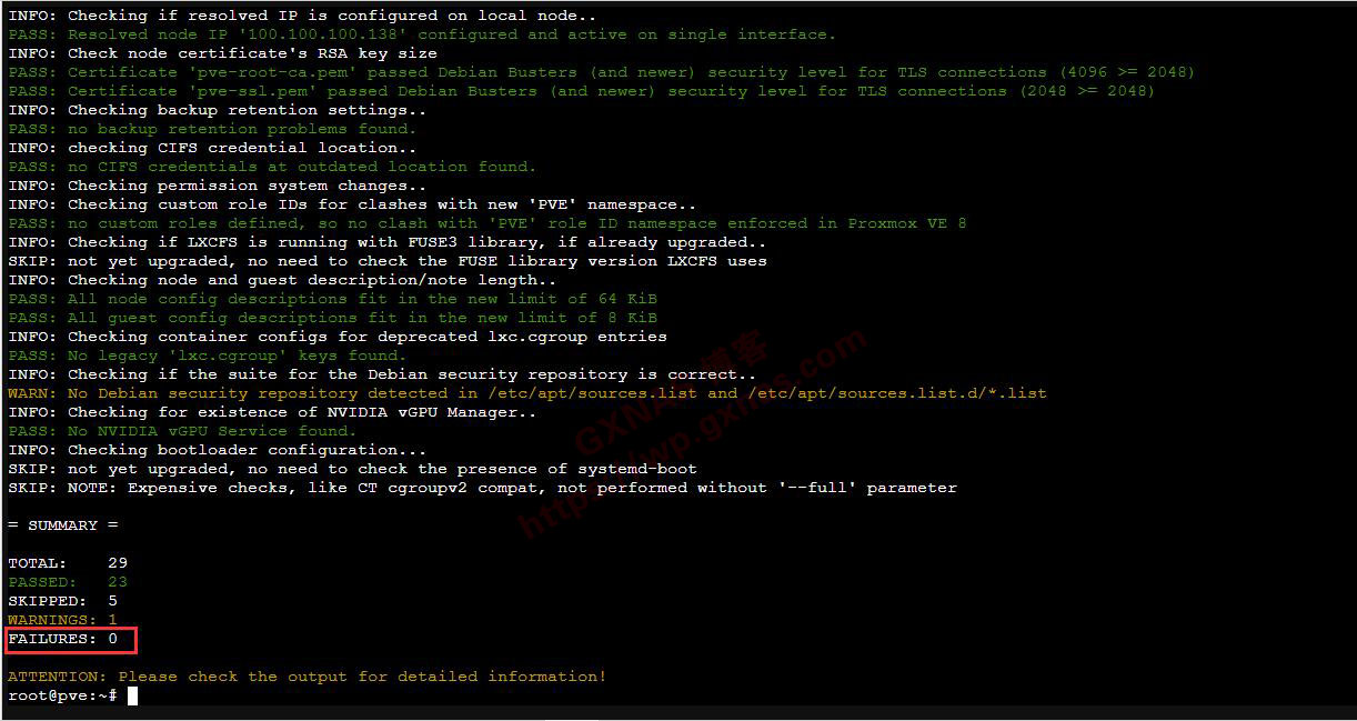 7、输入命令pve7to8回车,检查一下是否符合升级要求;