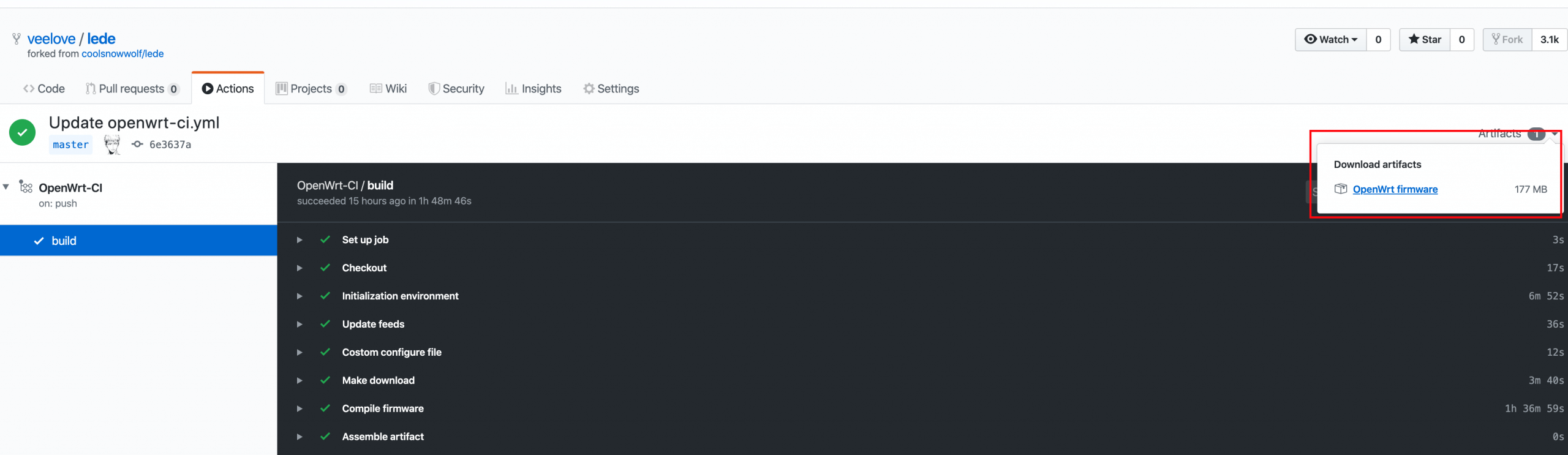 七、找到LEDE项目的ACTIONS,查看编译过程