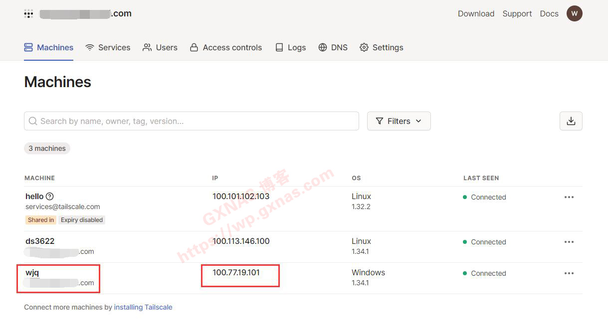 17、在Tailscale网页上看到手机成功加入到虚拟网络中;