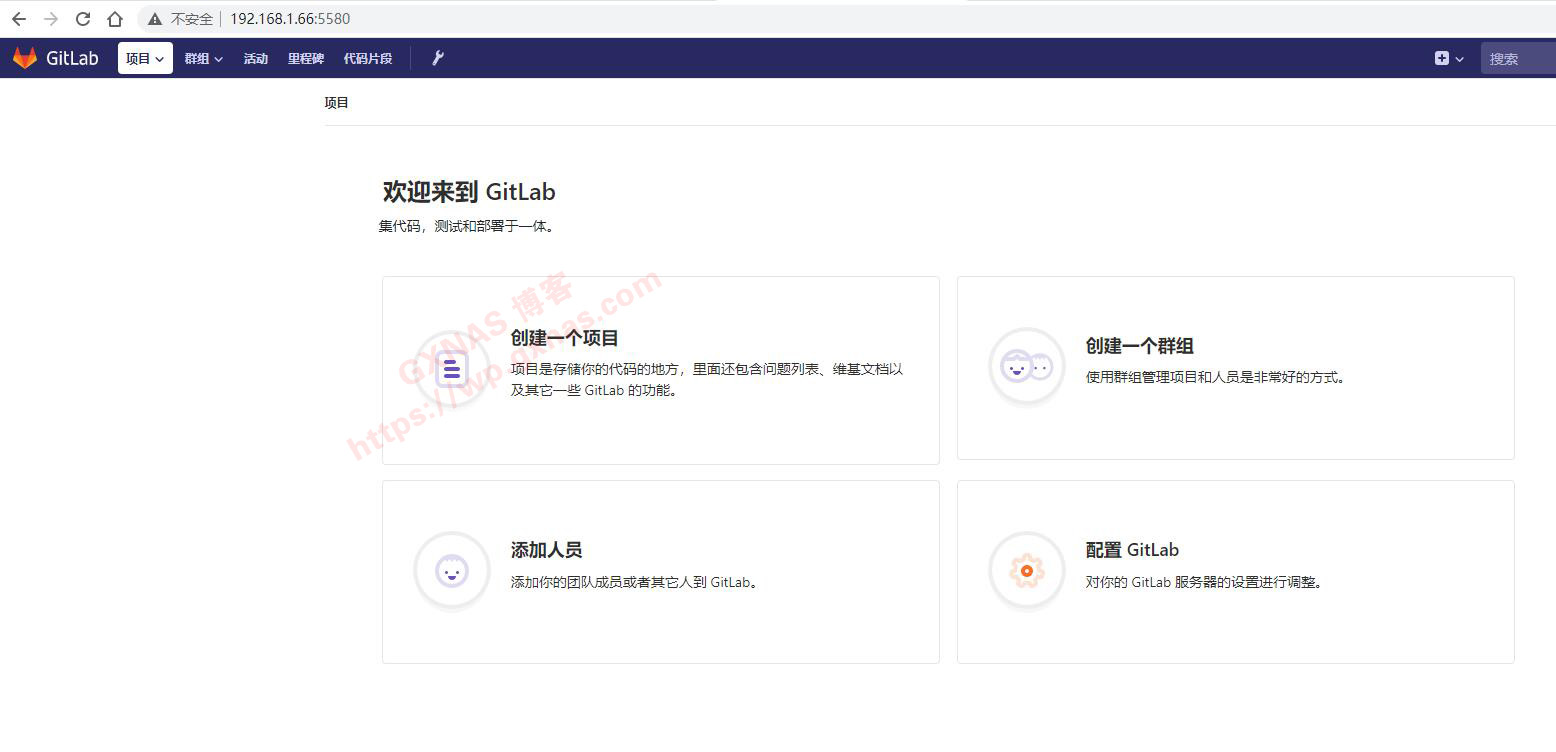 14、Gitlab的启动需要好几分钟,我等了大约5分钟,然后打开http://群晖的IP:5580,就看到登录界面了;