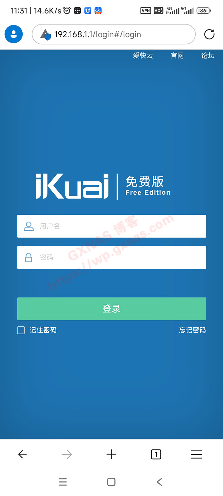 19、来测试一下远程访问的效果,关闭手机的WIFI使用手机流量来模拟远程访问,先在手机上打开tailscale(登录与OpenWrt同一个账号),然后在手机浏览器打开家里主路由内网IP看看,可以访问;)