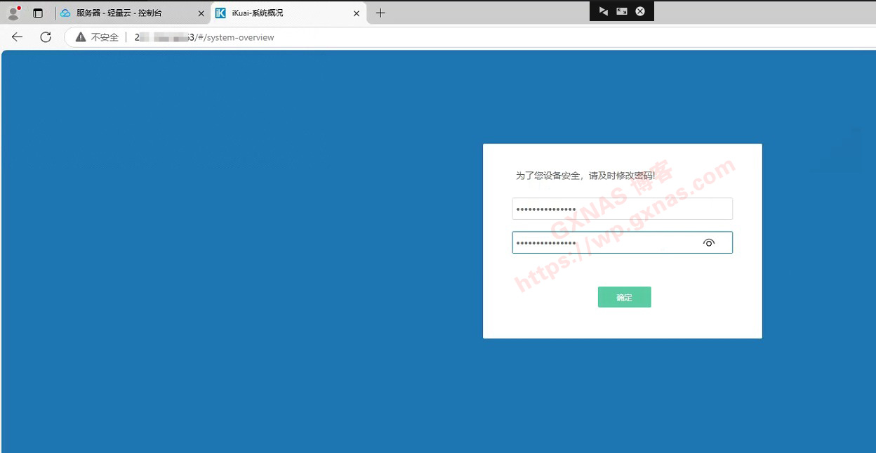 19、在浏览器输入云服务器的公网IP地址,就可以看到爱快软路由的登录地址,输入默认的账号admin以及默认密码admin,登录;)