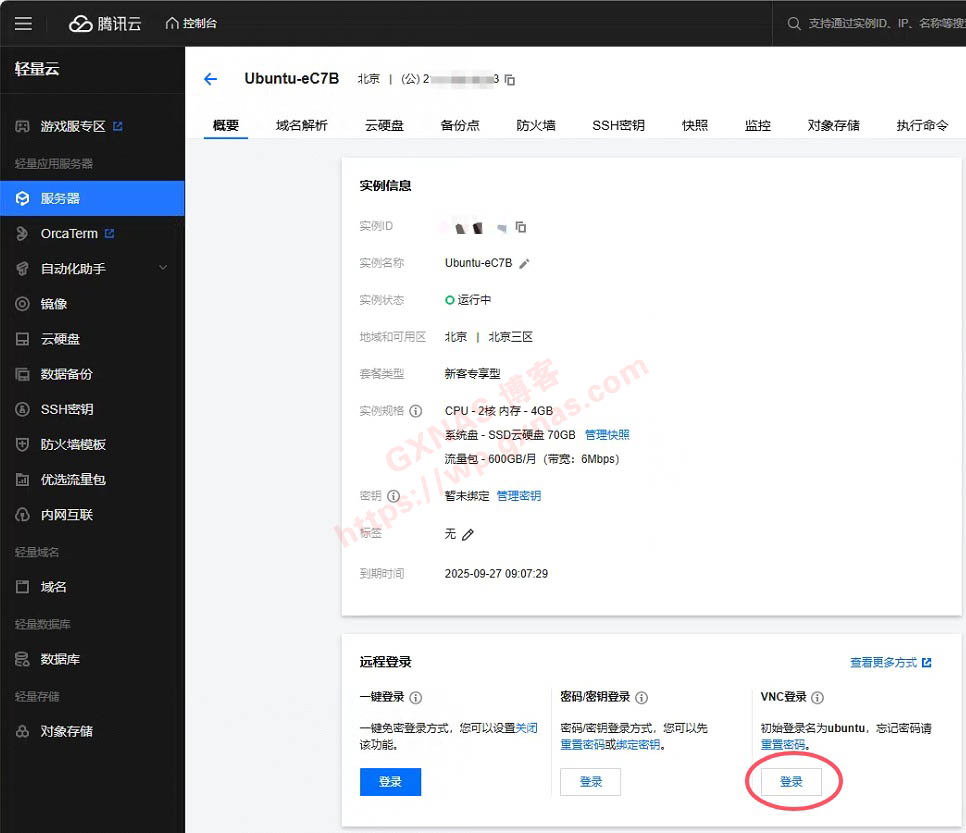 6、输入 reboot 命令重启服务器,或者在控制台重启服务器,然后在控制台找到“VNC登录”,点一下“登录”键;)