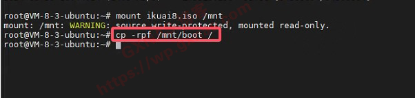 5、输入以下命令,复制爱快ISO安装镜像包到启动文件夹中: