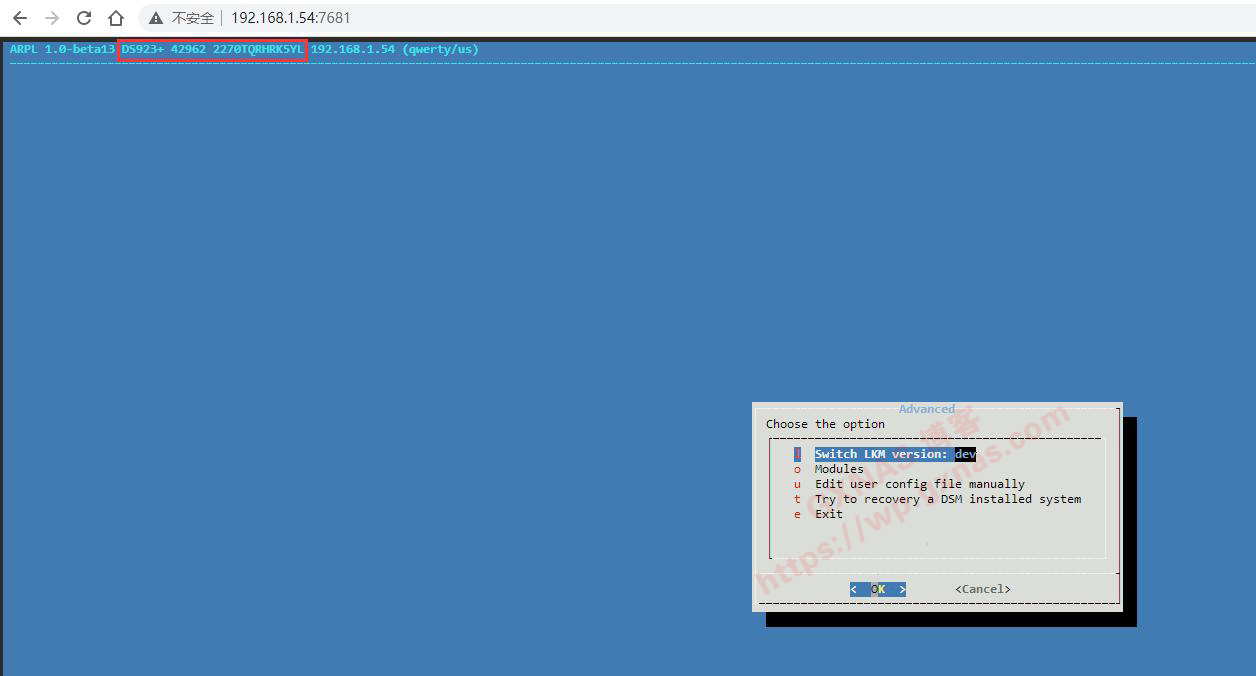 1、如果硬盘安装的DSM系统低于7.0,ARPL的菜单选择“Try to recovery a DSM installed system”后,会读取到系统型号,然后会自动跳到版本那里选择,走编译流程;