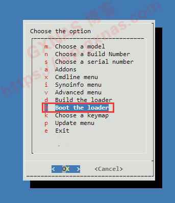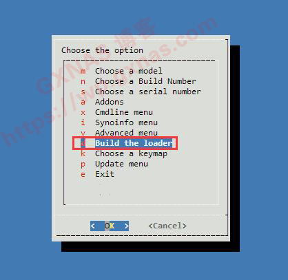 8、按向下的方向键,移动到“Build the loader”处,回车;