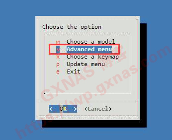 10、处理完成后,系统自动跳回菜单,移动方向键到“Advanced menu”处,回车;