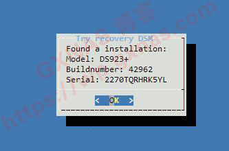 5、我这个硬盘装的是DS923+的系统,版本是7.11-42962,系统已经识别出来了,按回车;