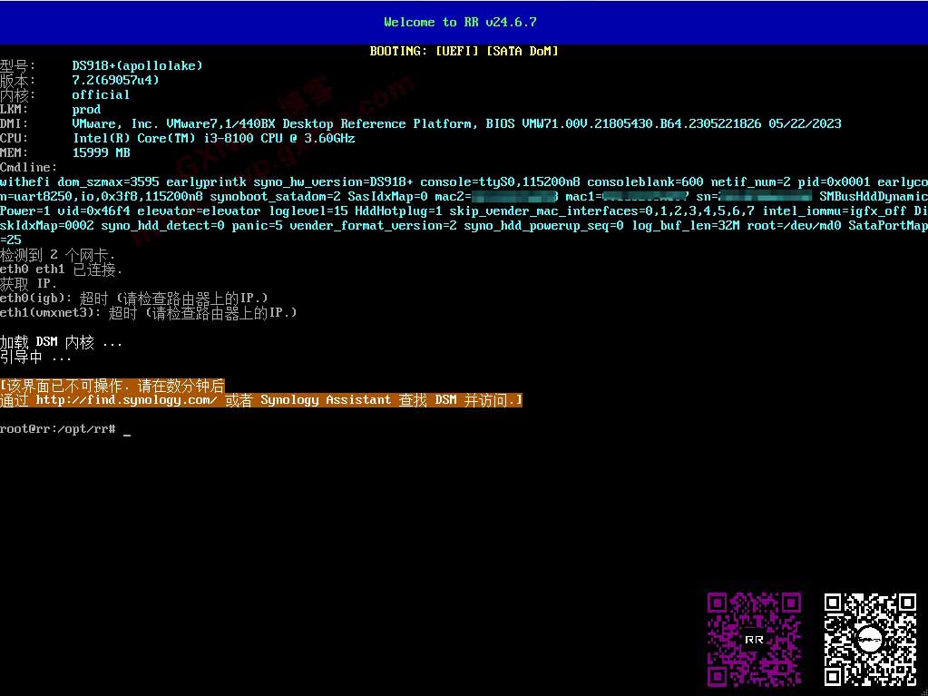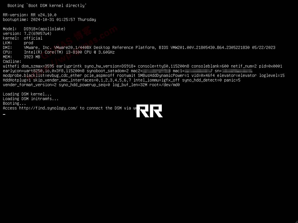 十一、这是RR开源项目编译引导并开启快速启动后的引导界面,该引导支持安装的DSM型号非常多,截止2024年10月底,RR最新版本支持DSM7.22版本;