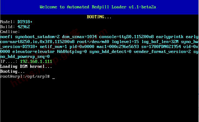 3、DSM1.04b的引导使用legacy传统引导启动后的界面,代表作品有:DS918+,该版本的引导支持从6.2-23739到6.2.3-25426up3;