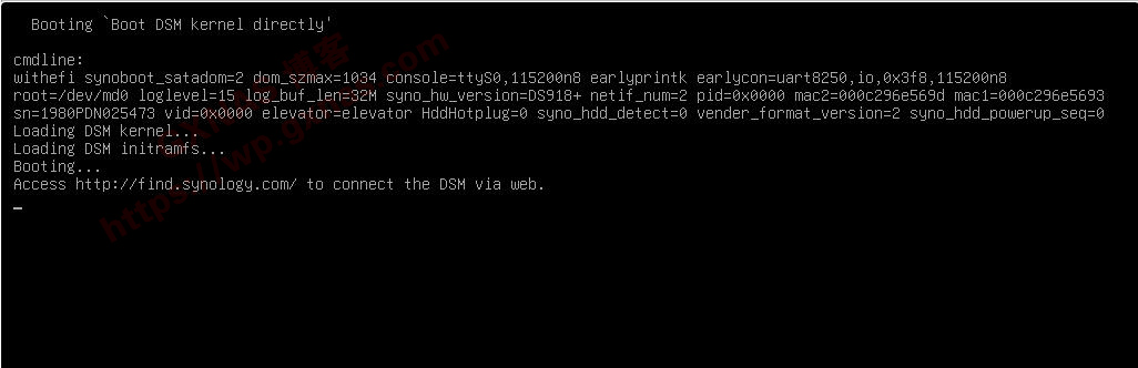 3、DSM1.04b的引导使用uefi方式引导启动后的界面,代表作品有:DS918+,该版本的引导支持从6.2-23739到6.2.3-25426up3;