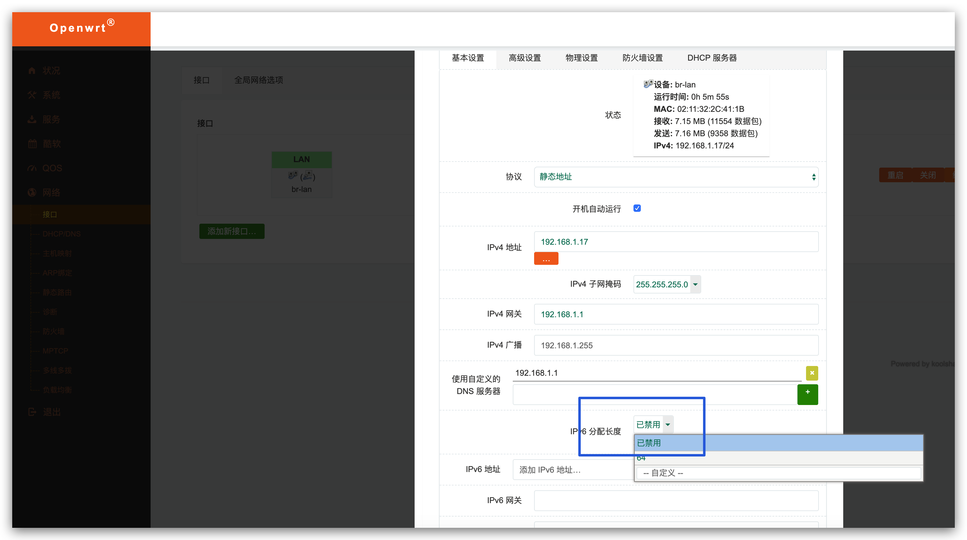 如何关闭openwrt/lede ipv6