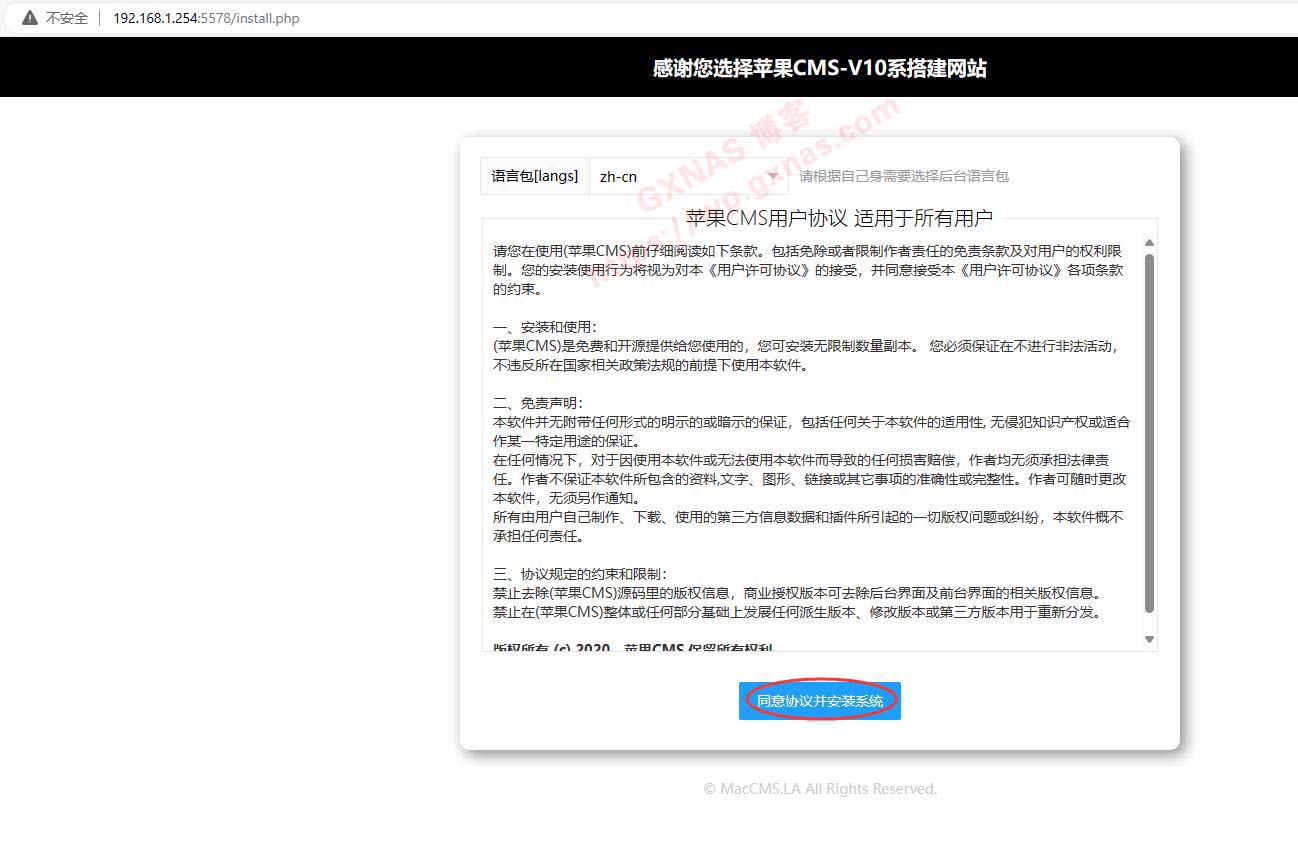 23、在浏览器打开http://群晖的IP:5578,进入安装界面,点“同意协议并安装系统”;