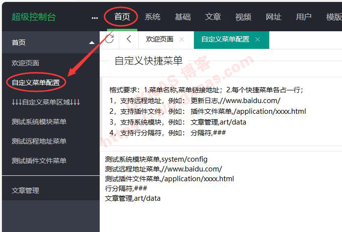 6、按键盘的F5键刷新一下浏览器,点菜单上“首页”,“MacCms后台管理”;