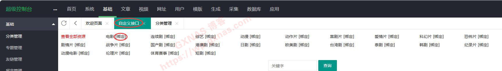 13、需要采集哪个分类和子类的数据,就绑定对应的分类和子类(比如只看短剧,可以只绑定短剧,其他的都不设置绑定);