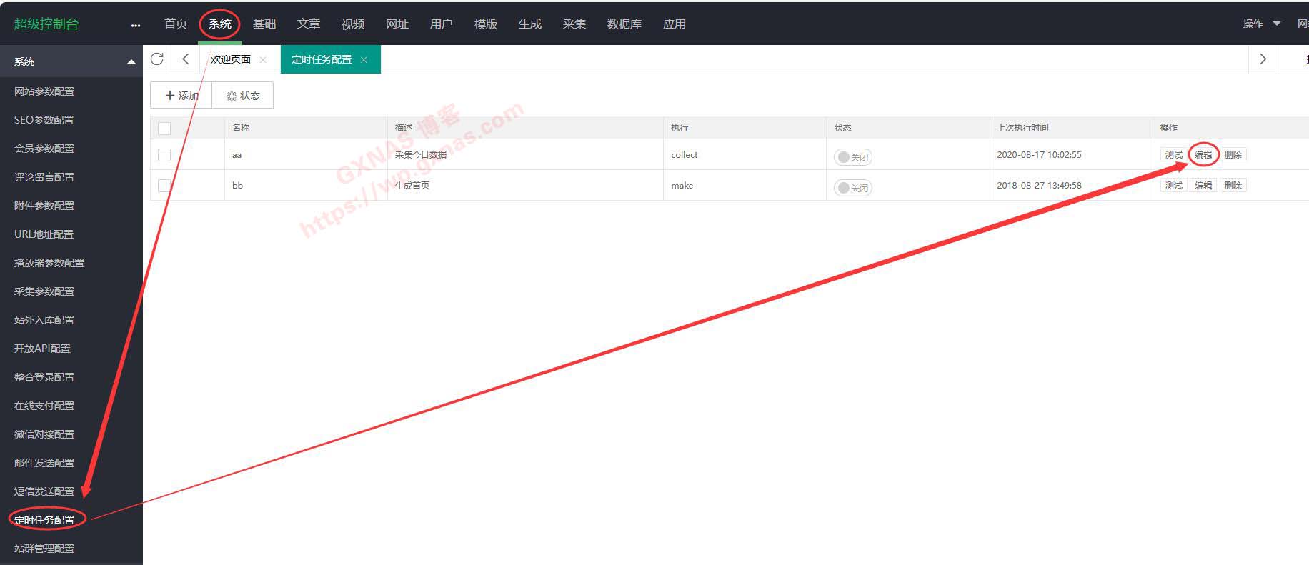 17、点击菜单“系统”,“定时配置任务”,找到“采集今日数据”,编辑;