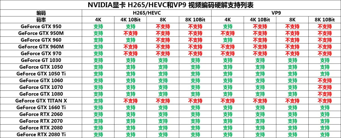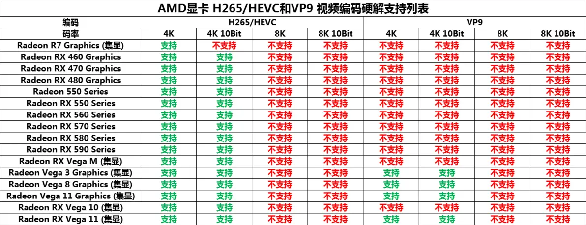 Intel集显、NVIDIA显卡、AMD显卡对于4K和8K视频硬件解码的支持列表