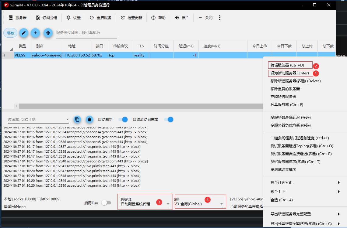 启动服务(2024年10年27 00:50:46)...D:\v2rayN\guiConfigs\configSpeedtest.jsonXray 24.10.16 (Xray, Penetrates Everything.) 25c7bc0 (go1.23.2 windows/amd64)A unified platform for anti-censorship.Failed to start: app/proxyman/inbound: failed to listen TCP on 10829 > transport/internet: failed to listen on address: 127.0.0.1:10829 > transport/internet/tcp: failed to listen TCP on 127.0.0.1:10829 > listen tcp 127.0.0.1:10829: bind: An attempt was made to access a socket in a way forbidden by its access permissions.2024年10年27 00:50:46 运行Core失败,请看日志