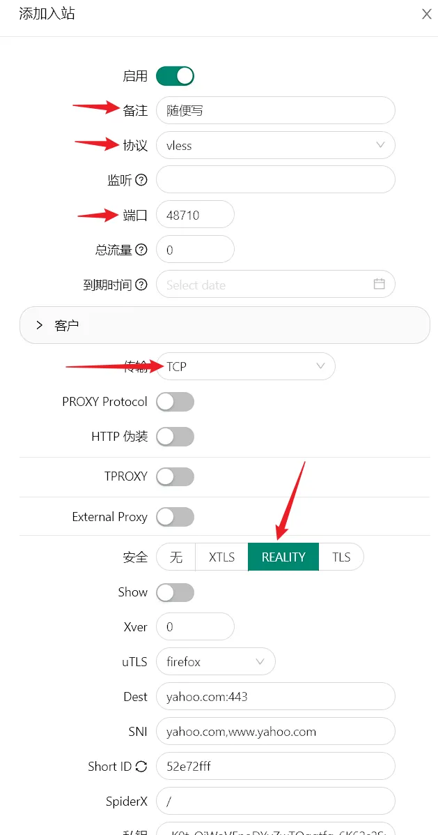 协议,默认就是vless,如果搭建reality协议就选vless。