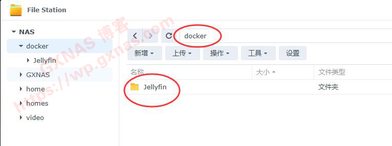 6、进入docker文件夹,建立“Jellyfin”子文件夹;