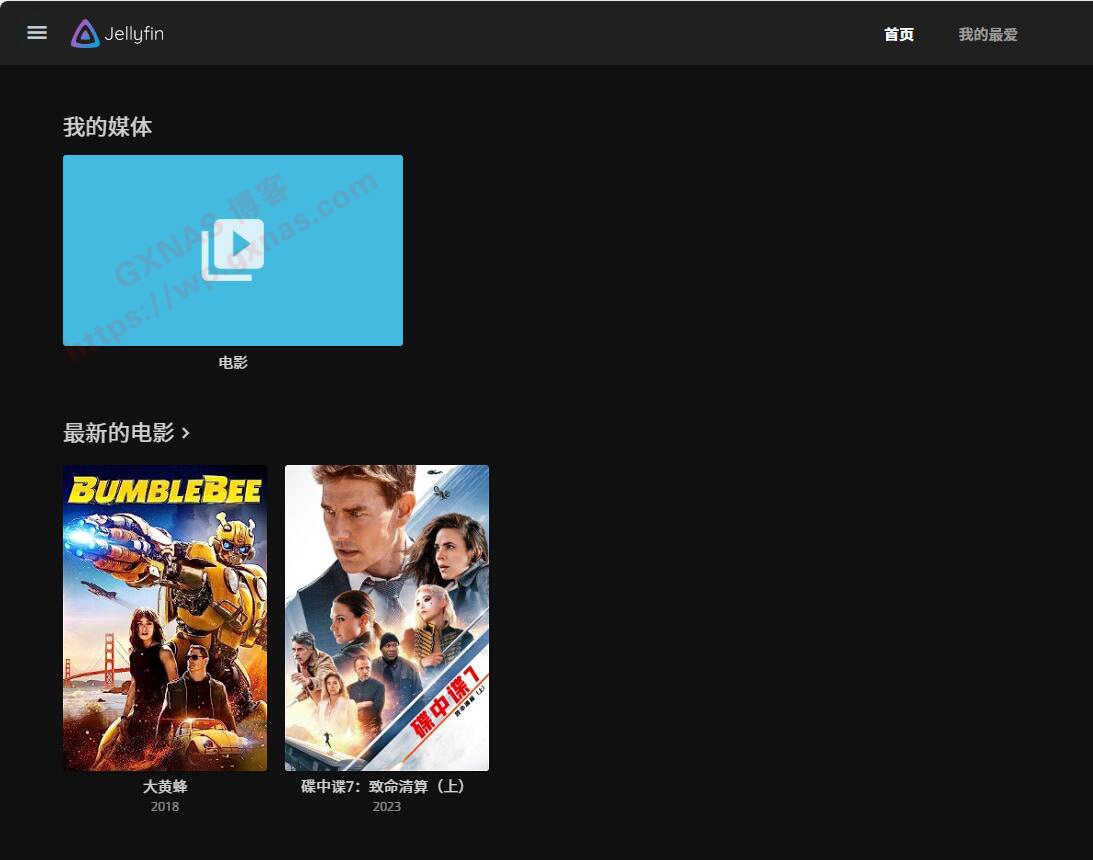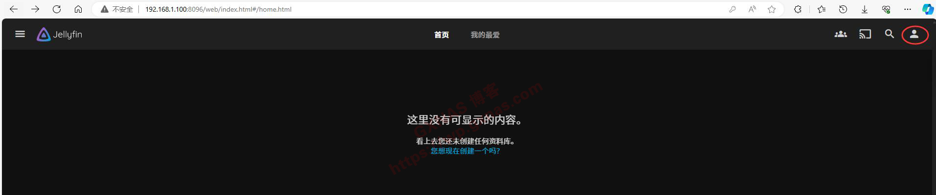 1、输入刚才设置的账号和密码,登录Jellyfin;
