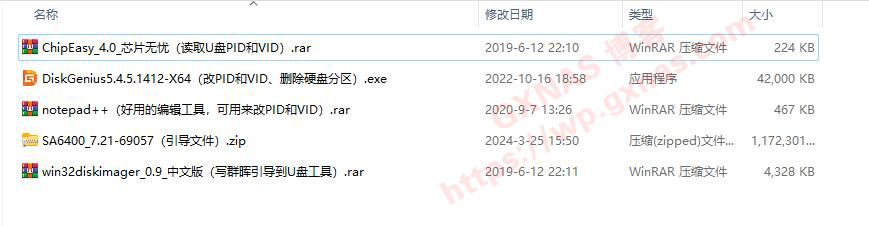 1、从【GXNAS网盘】下载以下文件,引导文件说明:你要安装哪个型号哪个版本就下载对应的文件,如果不知道的话可以参考下面(某个型号装不了就换别的型号,高版本装不了就装低版本,以此类推):