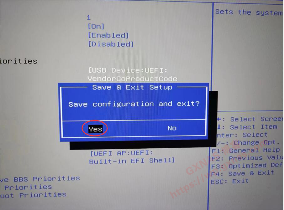 3、确认“Boot Option #1”这行,看到启动顺序已经改成U盘;