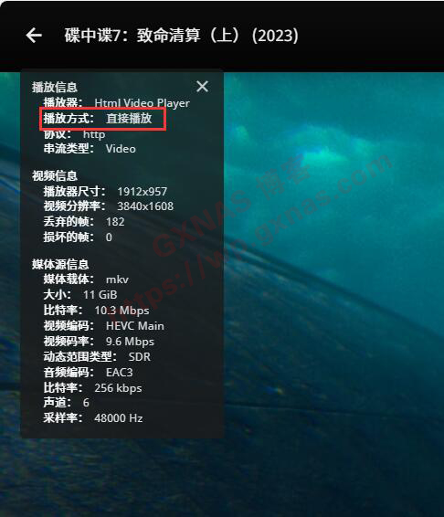 15、打开播放按钮,由于是在局域网播放,Jellyfin默认不转码直接播放;