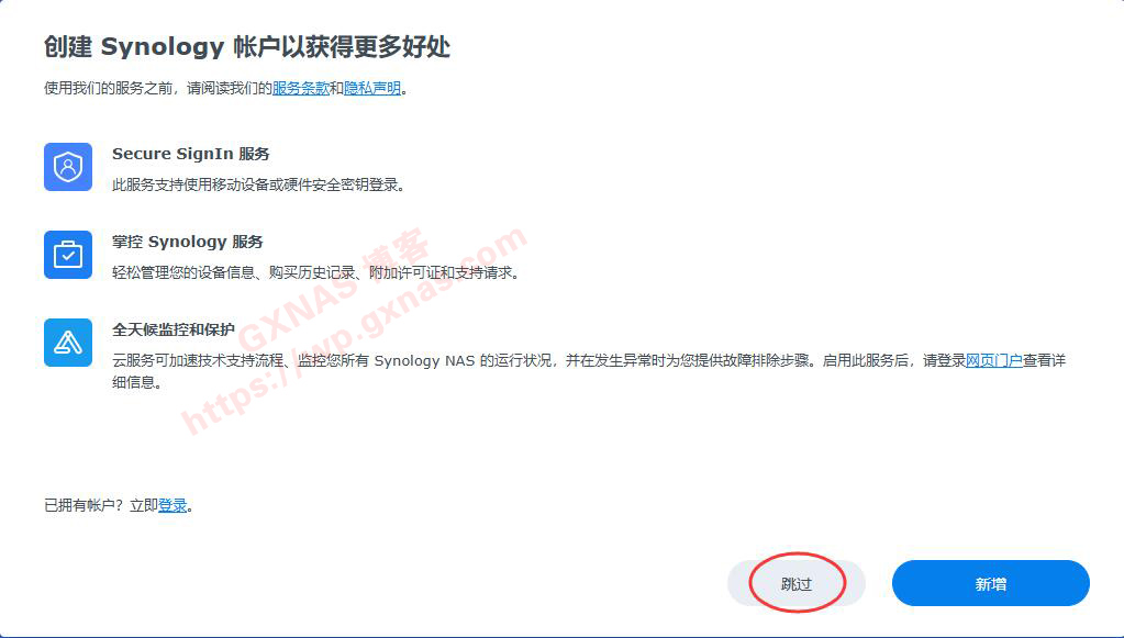 23、由于我使用的硬盘是空的所以会现在这个提示(如果你使用的硬盘是之前群晖在正常使用的,则不显示这个画面),点“立即创建”;