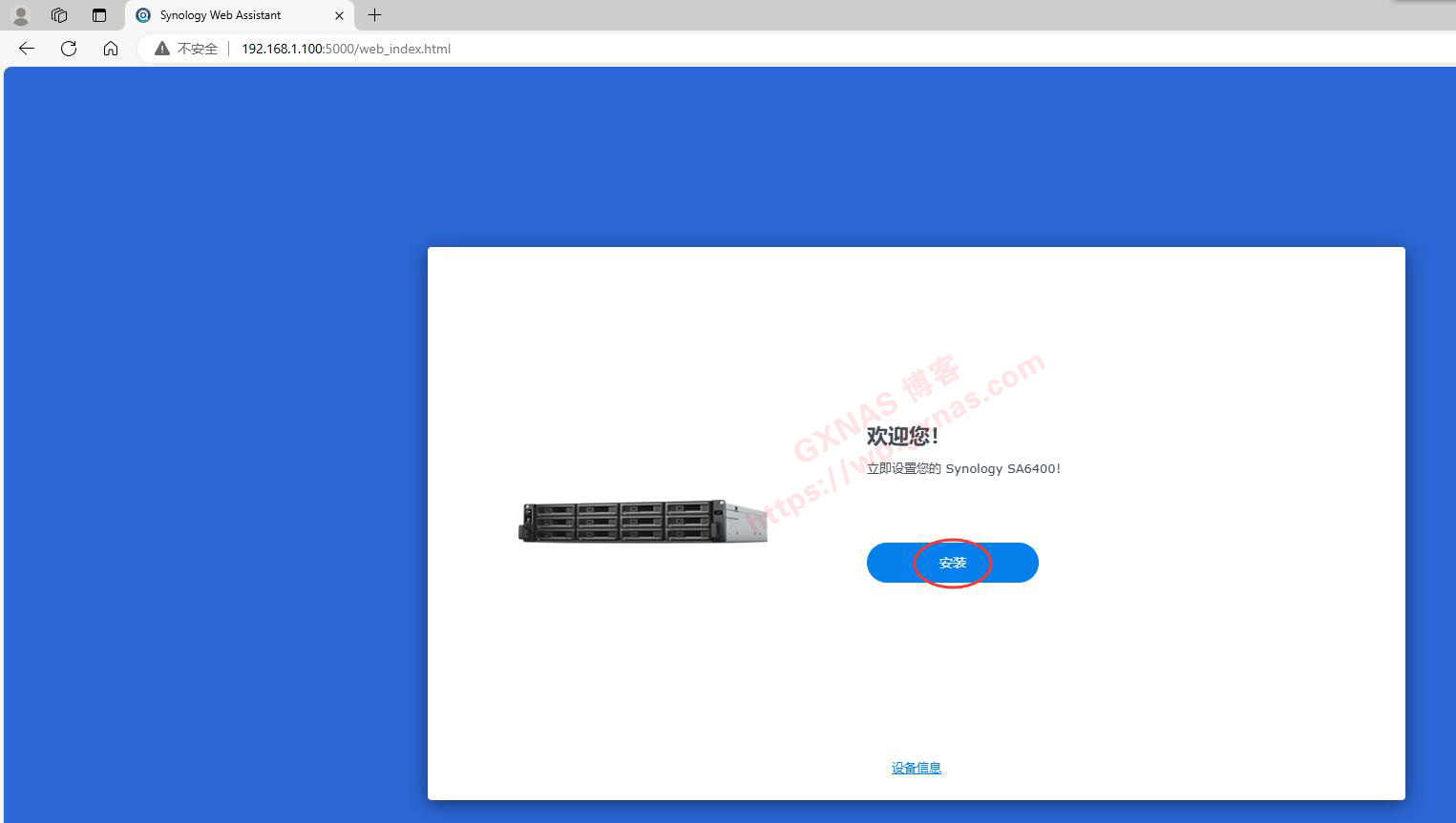 6、到电脑的浏览打开IP地址和端口号(如果打不开,稍等几分钟再试),点“安装”;