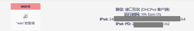 保存并应用配置后,检查 WAN6 接口是否取得了 IPv6-PD 地址。