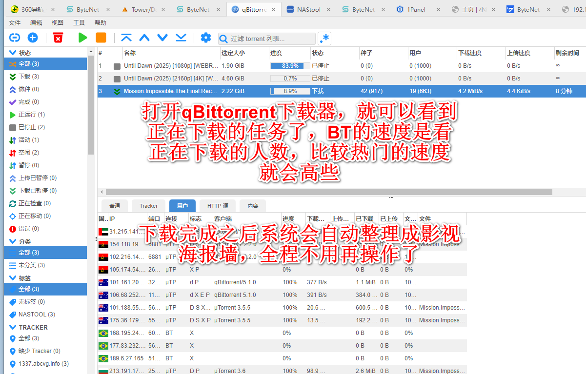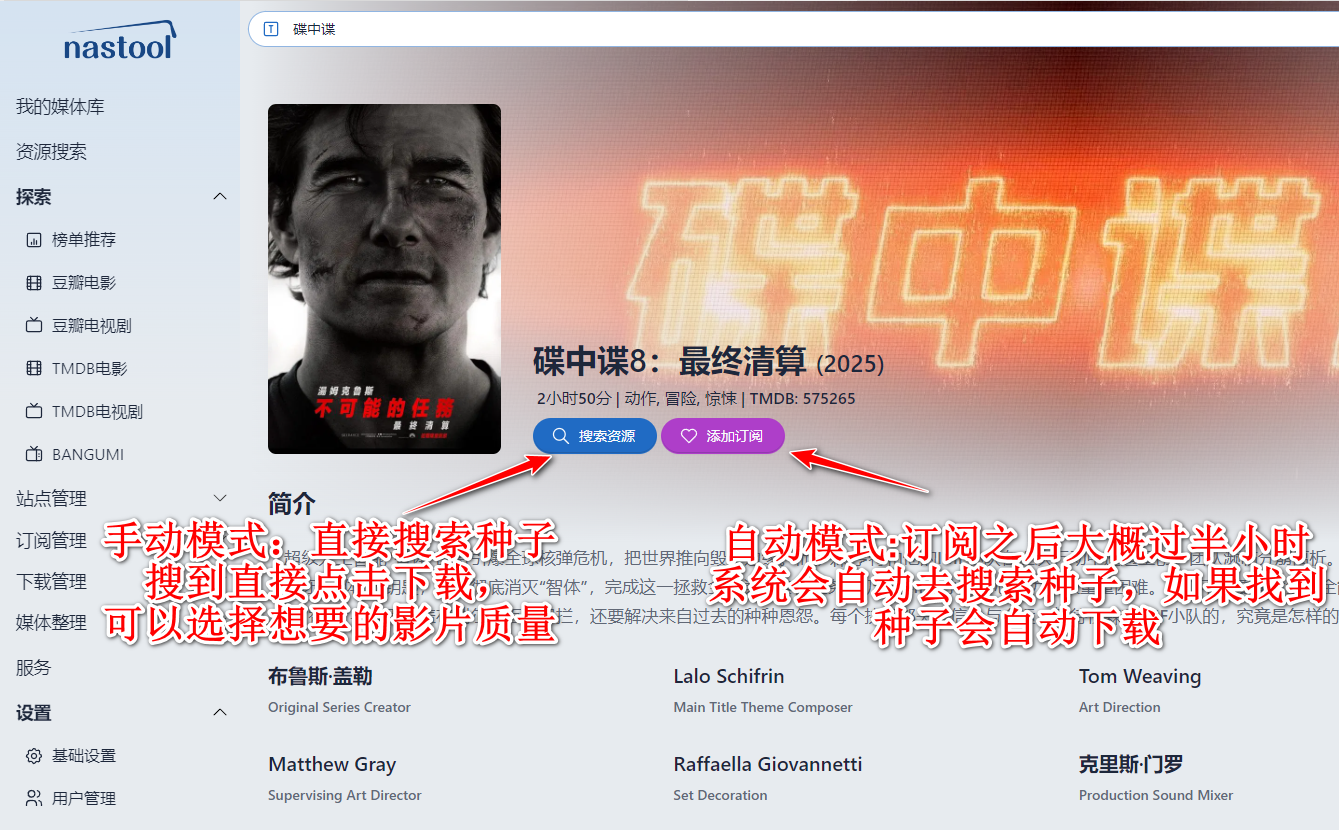 首页 玩机教程 安装使用 nastool它是一个影片 搜索 订阅 下载 整理 入库 刮削海报墙工具。和Moviepilot功能差不多.Nastool的优点:种子资源多,完全免费,无需站点考核,无需做种刷流. 缺点:下载速度稍慢2.手机订阅:3.信息通知