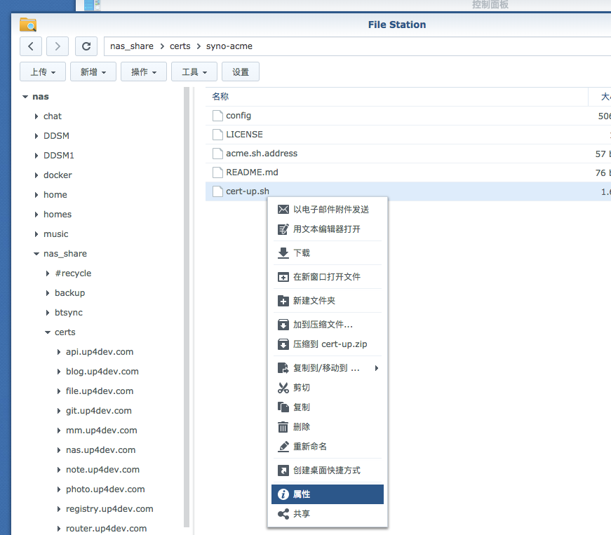 脚本里提供了回滚命令,可以通过ssh登录到nas,定位到对应目录,执行如下命令回滚证书目录到备份的状态: