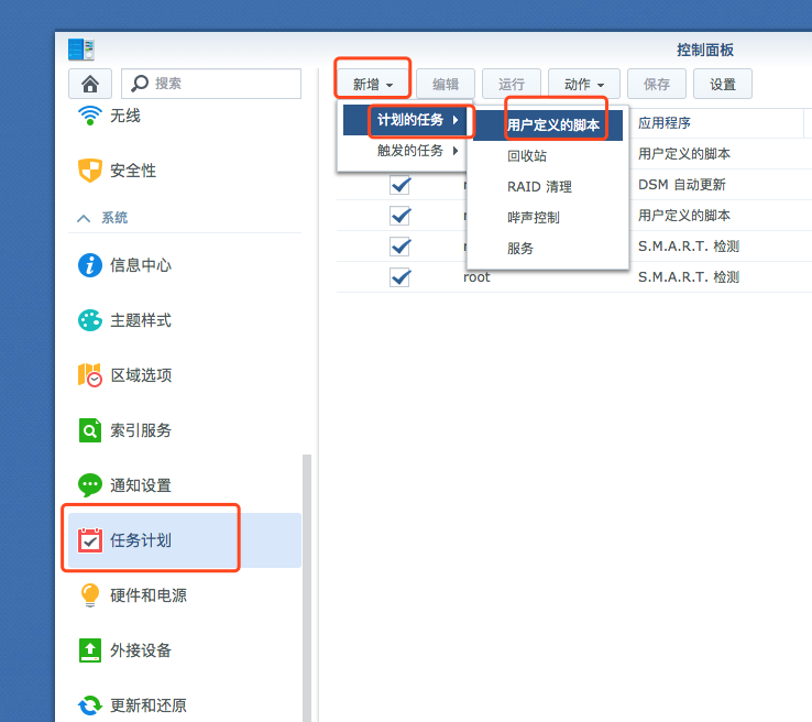 打开 控制面板 / 任务计划 / 新增 / 计划的任务 / 用户自定义的脚本: