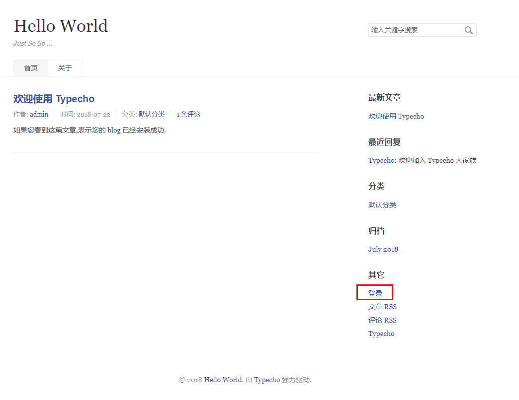 4、在浏览器上输入http://你的群晖IP:87打开博客,或者点“登录 ”进入管理后台。
