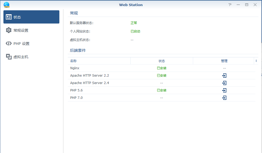 一、安装之前,我们先做好准备工作,按照下图配置好群晖的web环境: